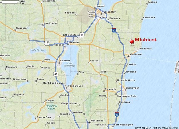 Mishicot is located in east central Wisconsin, about 30 miles southeast of Green Bay, 85 miles north of Milwaukee, and 5 miles west of the shore of Lake Michigan.